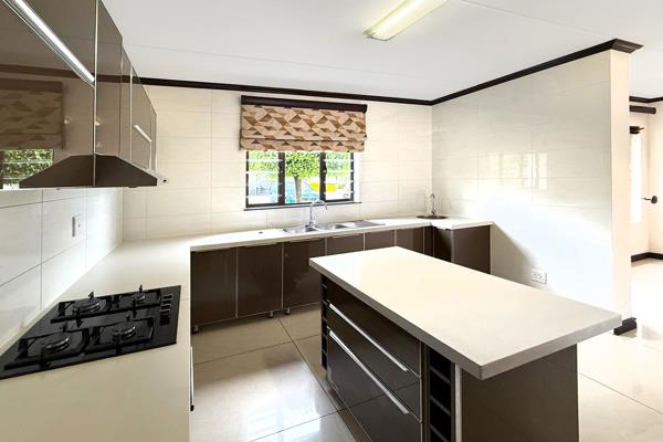 Upon entering, you''re welcomed by a spacious entrance hall that flows effortlessly into the open-plan living areas. The modern kitchen is a chef''s delight, featuring Caesarstone countertops, a built-in gas hob and oven, space for two under-counter appliances, and a double-door fridge.