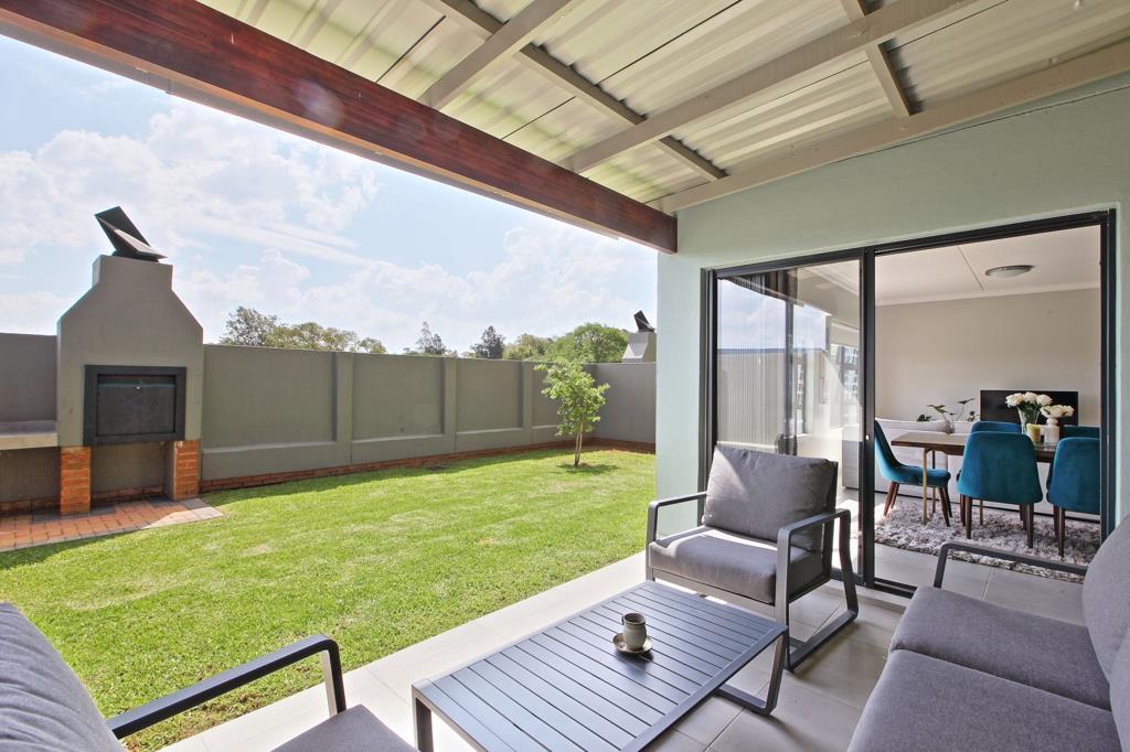 A sliding door opens onto a large, covered patio which is ideal for entertaining.