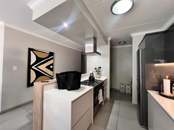 Open-Concept Living: Experience a generous and chic living space with a gorgeous kitchen equipped with sleek cabinetry and a gas stove, a scullery with room for 2 undercounter appliances, and a bright, airy lounge that seamlessly connects to your private oasis.