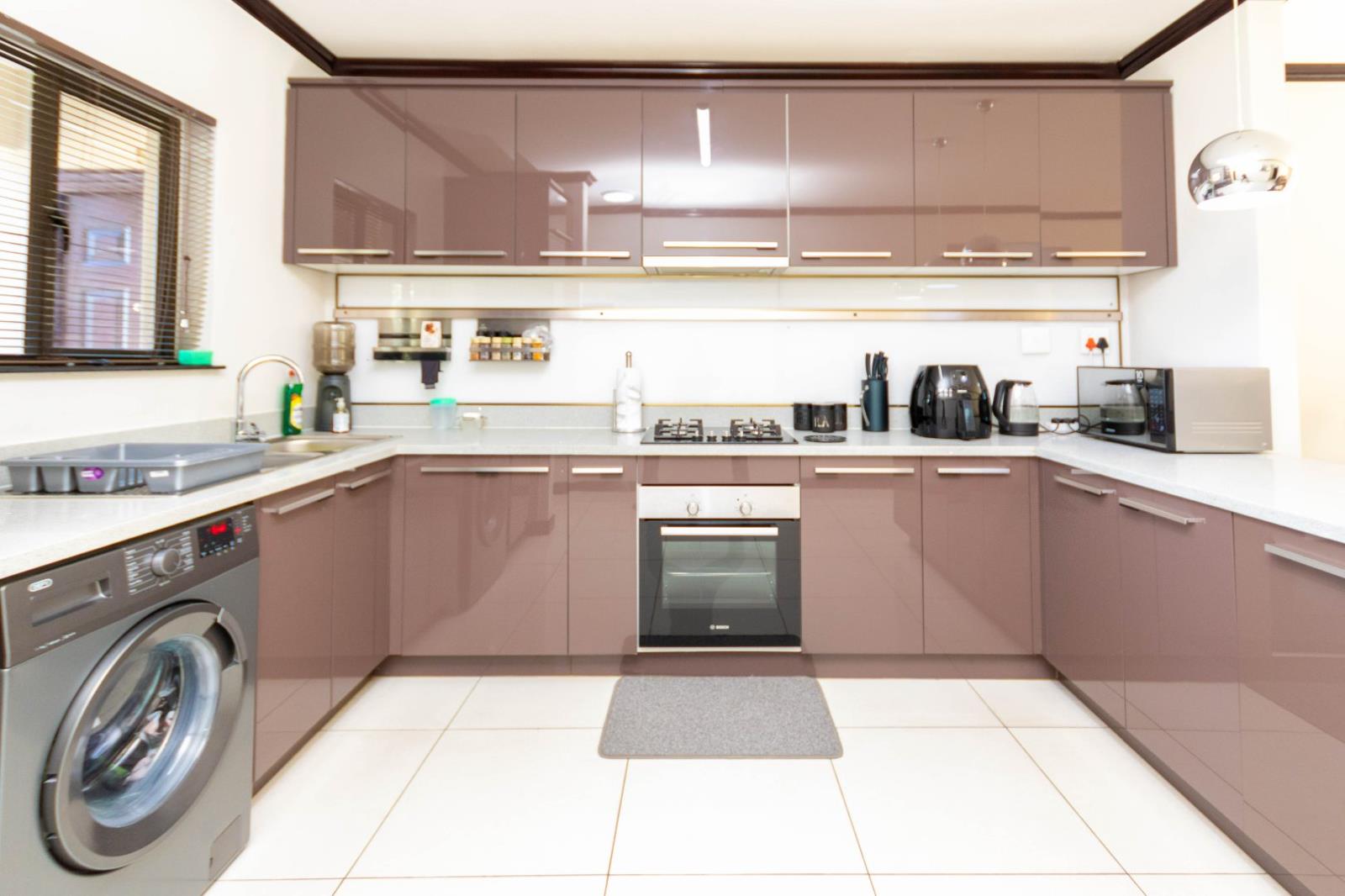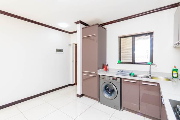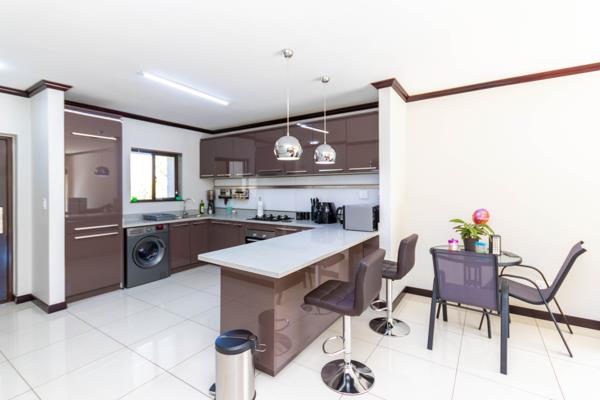 Discover modern living in this stunning 2-bedroom apartment located on the 2nd floor of the sought-after Galencia Walford Estates. Enjoy picturesque views of the garden and surrounding areas from your private balcony, which also features a built-in braai, perfect for entertaining. The open-plan layout boasts a stylish kitchen with high-gloss cupboards, a gas stove, and a fitted fridge, seamlessly flowing into the lounge area, all adorned with large porcelain tiles.