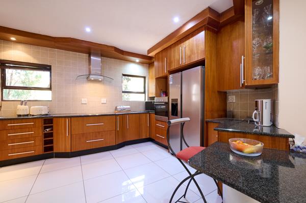 - Open plan kitchen with long running granite counter tops, breakfast nook, pantry cupboard, built in cupboards in abundance with separate scullery that accommodates all your appliances.