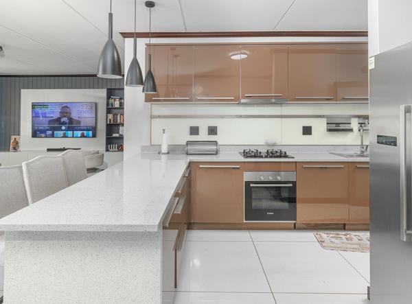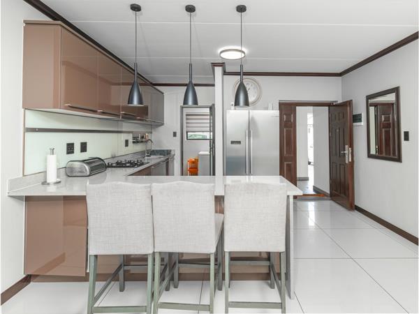 Gourmet Kitchen: The heart of the home boasts Caesar stone countertops, ample cupboard space, and a gas stove, ideal for uninterrupted cooking even during power outages. The separate scullery includes space for a wet appliance, cupboard space, ensuring a clutter-free environment.