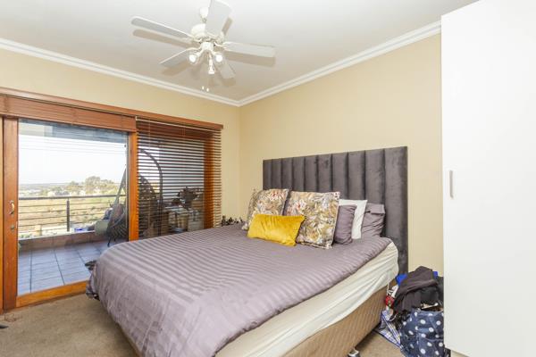 The lounge is spacious enough to fit in a L shape couch with an entertainment unit. It further opens up onto a double balcony with a built in braai. On days when youre entertaining, guest will enjoy the sun setting over a scenic view. The main bedroom also shares easy access to the balcony through a sliding door. It has BICs and an additional cupboard. In terms of beds, youll be able to comfortably fit in a queen bed and still have space to move around freely. The second bedroom is also decently sized, fitting a double bed or queen without pedestals.