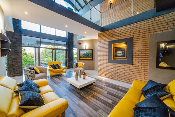 Step through the grand front door into a striking double-volume entrance, where natural light sets the tone for an inviting, uplifting home. The ground floor unfolds into expansive open-plan living and dining areas, anchored by a chef-inspired kitchen with bespoke cabinetry, designer lighting, premium appliances, and a spacious scullery for effortless functionality. A stylish guest suite with private entrance ensures comfort and privacy for visitors, while a sophisticated bar and private cinema add indulgence to everyday living.