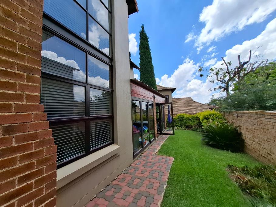 Outdoor living is a delight with an enclosed sunroompatio featuring large glass doors, perfect for enjoying the well-maintained garden and paved areas. Residents can also take advantage of a private pool and a dedicated braai room, ideal for entertaining. Pets are permitted, adding to the family-friendly appeal. The estate itself offers a club house and tennis court, promoting an active lifestyle.