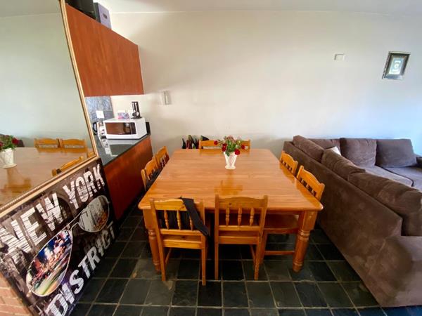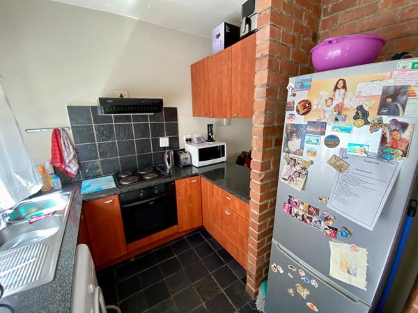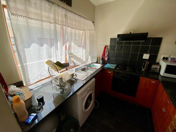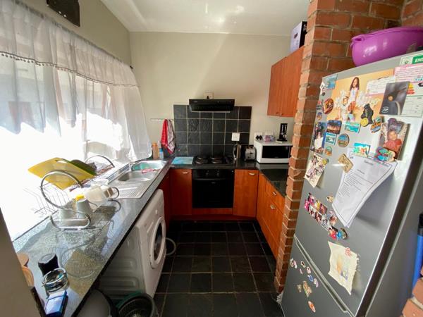 The semi-enclosed kitchen is well-equipped with plenty of cupboard space and a double under-counter area for appliances, making it ideal for cooking enthusiasts. The apartment benefits from 24-hour security patrols and stringent gate access control. The complex also boasts a range of amenities such as a swimming pool, clubhouse, squash court, and braai facilities, all conveniently located nearby.