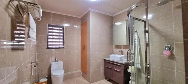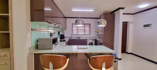Three-bedroom ground floor apartment available for sale at Walford Estate. The modern kitchen features high gloss finishes, spice racks, a gas hob, an integrated single fridge/freezer combination, and a dishwasher. This kitchen opens into an open-plan living area that extends to a generous covered patio equipped with a prep bowl, under-counter storage, and a built-in braai. The unit is fibre-ready, and electricity is on a pre-paid system. Additionally, the apartment comes with two covered parking bays. The estate offers 24-hour access control security and includes a clubhouse with a swimming pool.