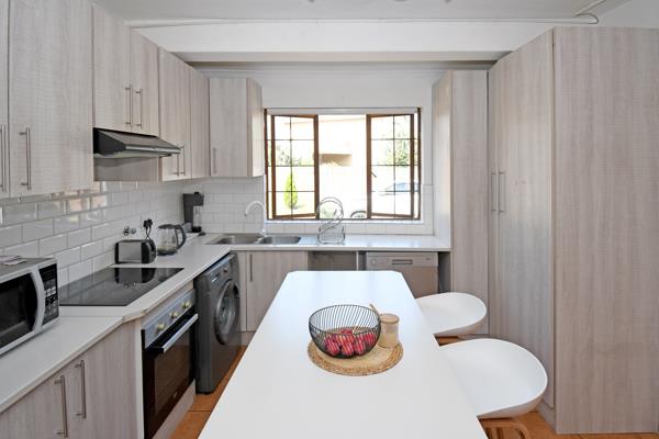 Modern, Open-Plan Living graces the wonderfully large lounge, dining area and the stylish kitchen with ample cupboard space and under-counter space for 2 Machines all flowing seamlessly through a sliding door, out to a beautiful garden creating the perfect indoor-outdoor living experience.