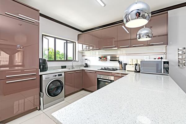 The kitchen boasts sleek finishes, high gloss cabinetry with built-in appliances, gas hob and space for one appliance. The living area seamlessly flows onto your private balcony with an in-built braai place.