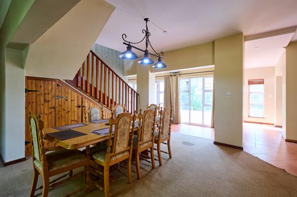 - Dining room allows for any sized dining table arrangement and opens out onto decked patio with built in braai.