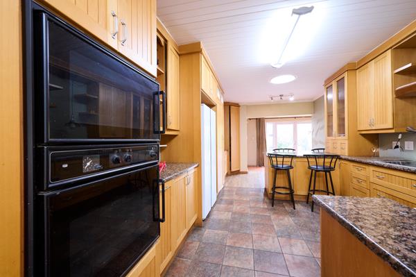 - Spacious open kitchen with long running granite counter tops, breakfast nook and ample built in cupboards. Space for double door fridge, double eye-level ovens and stove top. Scullery allows for all your plumbed appliances and has back door leading to double garage.