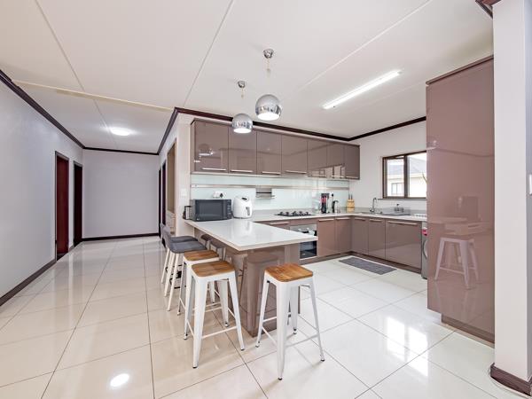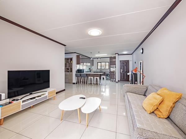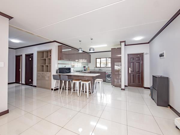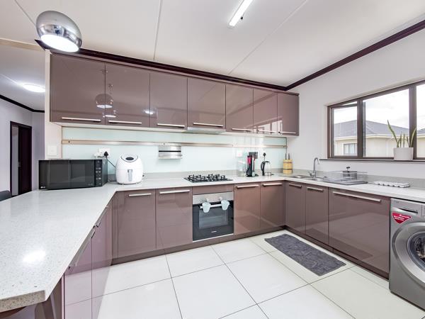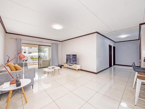 The kitchen boasts modern finishes, high gloss cabinetry with built-in appliances Fridge, and Dish Washing machine , gas hob and space for one appliance. The living area seamlessly flows onto your private balcony with an in-built braai place.