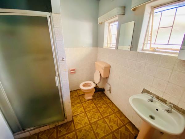 - Three adjacent tiled rooms at the back, each with own shower and toilet