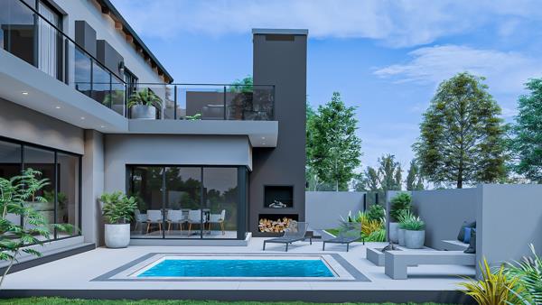 The living area seamlessly integrates a lounge, dining room, open-plan kitchen, and patio with a convenient gas burner, making it ideal for family gatherings. This flows into the open patio area, complete with a built-in braai, pool, and BOMA with firepit and built-in seatingperfect for outdoor entertainment.