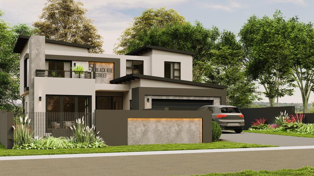 Construction starting in February 2025. Welcome to this beautifully designed family home that effortlessly combines contemporary living with functionality. Located in a sought-after estate, this property offers a seamless flow between indoor and outdoor spaces, ideal for both relaxation and entertaining. As you enter the house an open-plan layout connects the spacious kitchen, dining room, and lounge. This expansive living area leads out to a covered patio with a built-in braai, perfect for outdoor dining or enjoying a quiet evening. Stacking doors open to the entertainment area with a Boma/ firepit and built-in seating, creating a cozy spot to gather while overlooking the pool and landscaped garden. Whether hosting family and friends or simply enjoying the outdoors, this space is sure to impress. The modern kitchen is the heart of the home, featuring a large center island with breakfast counter and gas stove. It also includes a separate scullery and pantry, providing ample storage space and keeping the kitchen tidy. For added convenience, the kitchen opens to a private yard and staff quarters with an ensuite bathroom.