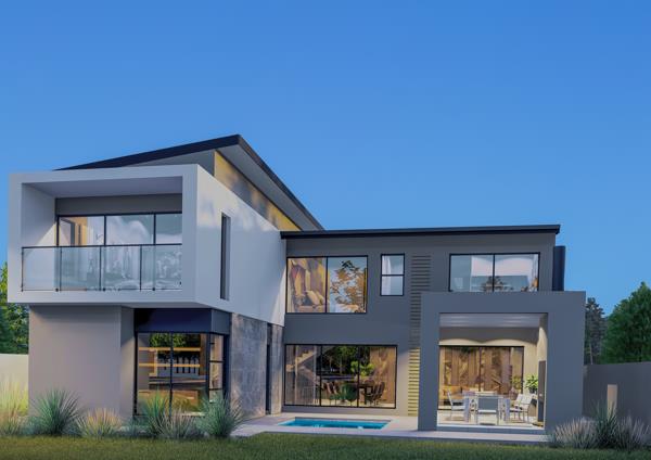 The double garage offers direct interior access into the foyer, leading into an open-plan living area with a lounge, dining room, and sleek kitchen. The covered patio, complete with a built-in braai and countertop, seamlessly extends the entertainment space while overlooking the pool and landscaped garden.