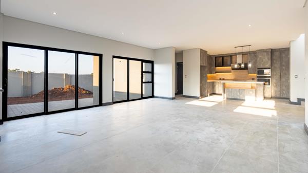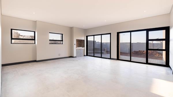 The heart of the home includes a lounge, dining room, and kitchen, all designed around easy entertaining. The living area features a built-in braai and overlooks the landscaped garden with BOMA complete with a firepit and built-in seating offering the perfect outdoor setting, with space to add further amenities.