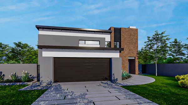 The modern kitchen includes a prep-bowl island doubling as a breakfast nook and a separate scullery with direct access to the kitchen yard. The double garage offers convenient interior access directly into the living area.
