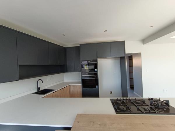 Modern Kitchen with an island for extra working space Gas-stove, space for a double fridge.,