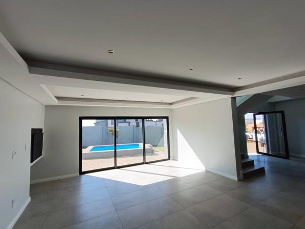 3 Living Areas: Lounge, Dining Room & Family room with a built-in braai opening up to the swimming pool & boma.