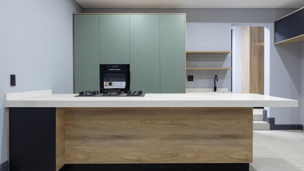 Adjacent to the kitchen, the staircase leads to the first-floor family area, designed for relaxation and family living.