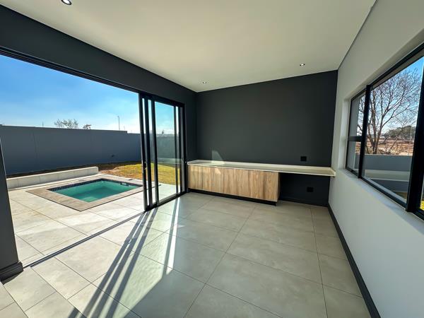 Entertain year-round in the enclosed patio with a built-in braai, where sliding doors open out to your sparkling swimming pool and landscaped gardenideal for relaxing or hosting family and friends.