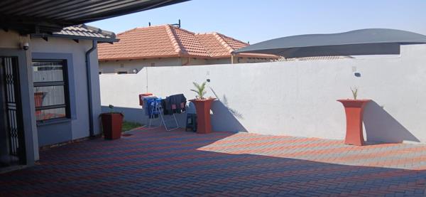 Large carport, Outside paving , property is walled and gated. Burglar bars and security gates.
