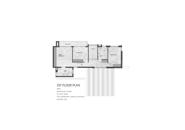 Upstairs, a cozy family area connects bedrooms 2 and 3 (sharing a full bath), while a luxurious main suite includes its own en-suite and access to a wrap-around balcony with peaceful garden views.