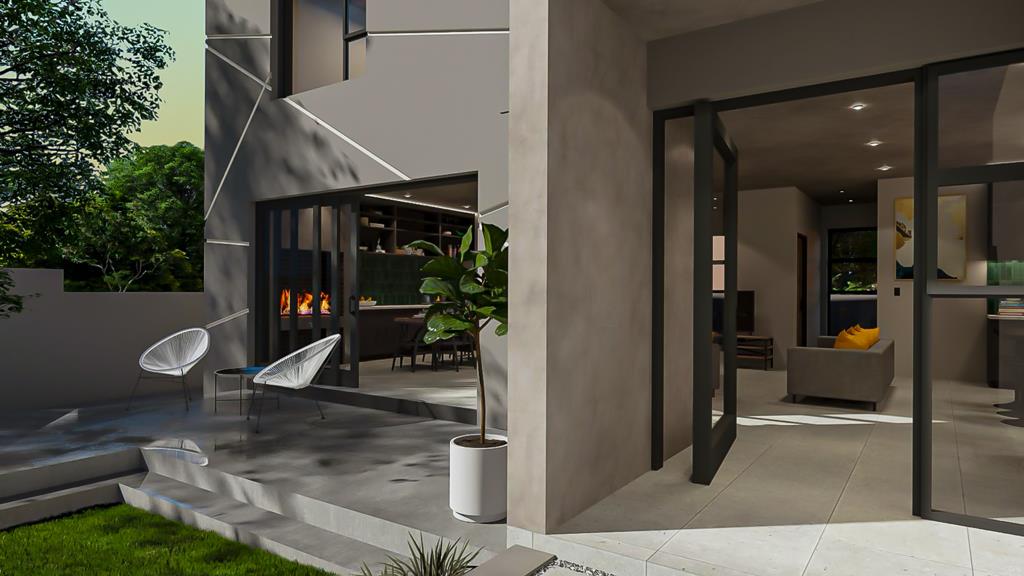 From the front door, step into the foyer, flowing into an expansive open-plan living area. Here, the kitchen, lounge, and diningbraai room with built-in braai connect seamlessly, opening onto the garden with pool, BOMA firepit, and built-in seatingperfect for entertainment and relaxation.