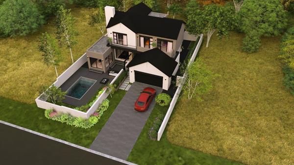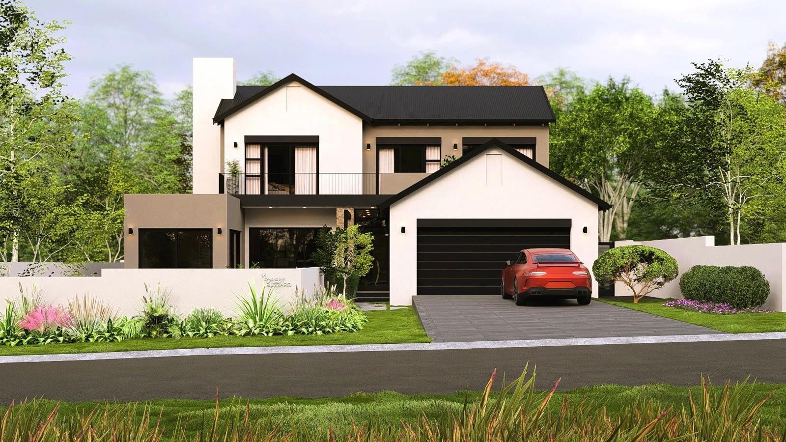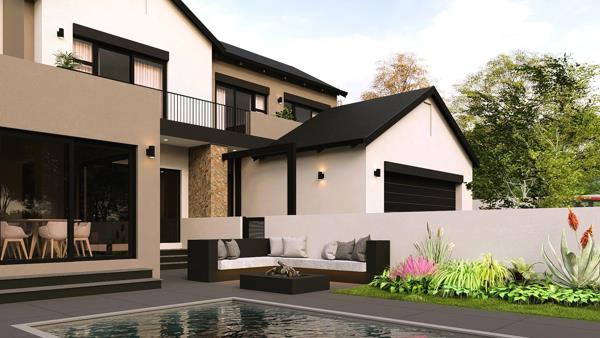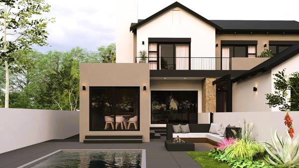 Construction of this building project is starting in October 2025. Welcome to this beautifully designed family home that effortlessly combines contemporary living with functionality. Located in the sought-after Fountain Brooks estate, this property offers a seamless flow between indoor and outdoor spaces, ideal for both relaxation and entertaining. As you enter the house, an open-plan layout connects the spacious kitchen, dining room, and lounge. This expansive living area leads out to an enclosed patio with a built-in braai, perfect for outdoor dining or enjoying a quiet evening. Stacking doors open to the outside entertainment creating a cozy spot to gather while overlooking the pool and landscaped garden. Whether hosting family and friends or simply enjoying the outdoors, this space is sure to impress. The modern kitchen is the heart of the home, featuring a large center island with breakfast counter and gas stove. It also includes a separate scullery and pantry, providing ample storage space and keeping the kitchen tidy. For added convenience, the kitchen opens to a private yard and staff quarters with an ensuite bathroom.