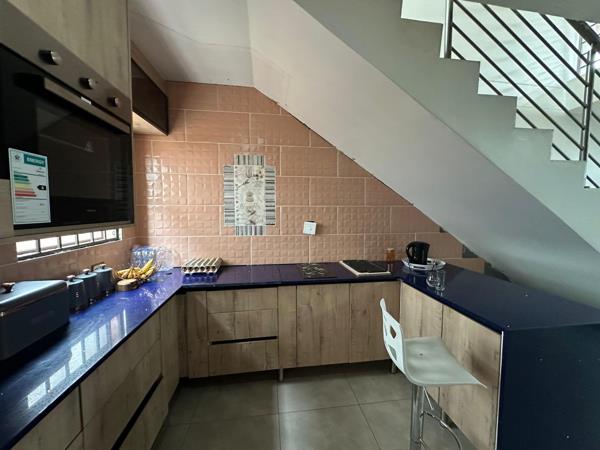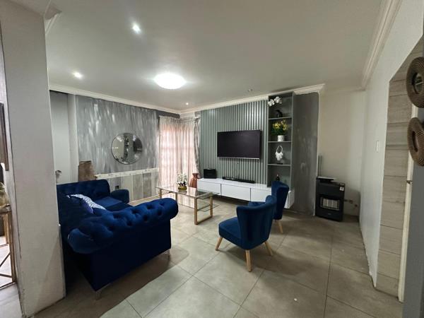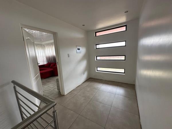 Step into modern elegance with this beautifully designed double-story family home, perfectly situated in a peaceful and secure estate. Offering the ideal blend of comfort, sophistication, and practicality, this home is tailored for both family living and effortless entertaining. The property features three spacious bedrooms, including a luxurious main suite thats large enough to accommodate a private lounge or reading nook. There are two full bathrooms, a convenient guest toilet, and an inviting open-plan kitchen and lounge area that flows seamlessly, creating a warm and welcoming atmosphere. The downstairs guest suite provides added versatility for visitors or extended family, while the balcony offers lovely views of the estate. The homes bold architectural design makes a statement with stylish stone finishes and a striking red accent wall that adds character and charm. Inside, natural light fills the living spaces, highlighting the modern finishes and elegant tiled flooring throughout. The automated double garage adds both convenience and security. This property is the perfect balance of contemporary style and family comfortan opportunity not to be missed. Book your private viewing today and experience modern estate living at its finest.