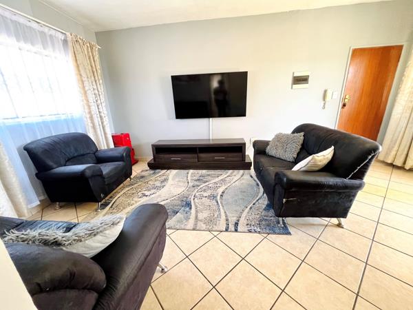 The property boasts 2 bedrooms which shares a separate bathroom, with a bath tub and a shower. It is an open plan with a lounge and has space to accomodate the dining furniture. There''s a spacious balcony with beautiful views of the neighborhood. The kitchen is separate and gives privacy when preparing the meals for your guests. There''s space to connect the washing machine and a single door fridge.