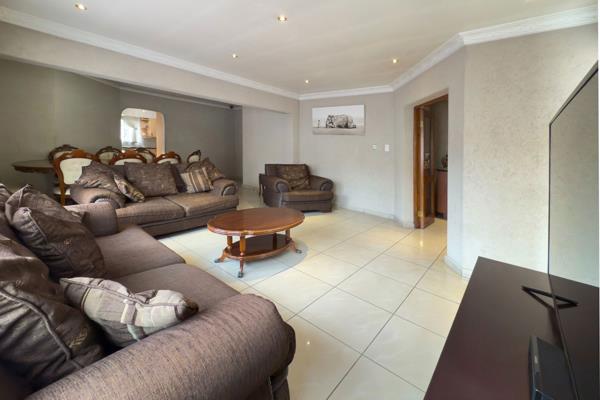 This home features three large, sunlit bedrooms with built-in cupboards and space for study areas. Two modern bathrooms include a main en suite, offering comfort and privacy.