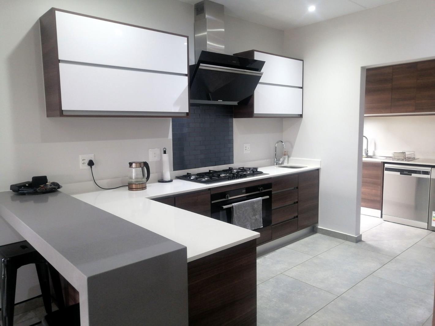 The sleek kitchen is a chefs dream, boasting Caesar stone countertops, a walk-in pantry, and a separate scullery equipped with a Siemens dishwasher and washing machine for your convenience. The living areas seamlessly extend to a covered patio, perfect for entertaining, which overlooks a private garden.