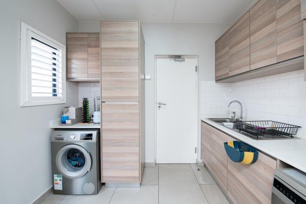 The spacious living area has plenty of natural light and provides a comfortable and inviting space for family and friends. The kitchen features a gas stove, a separate scullery, and plenty of cupboard space