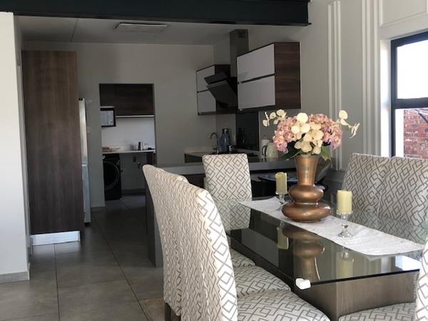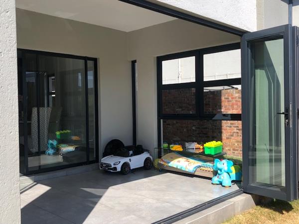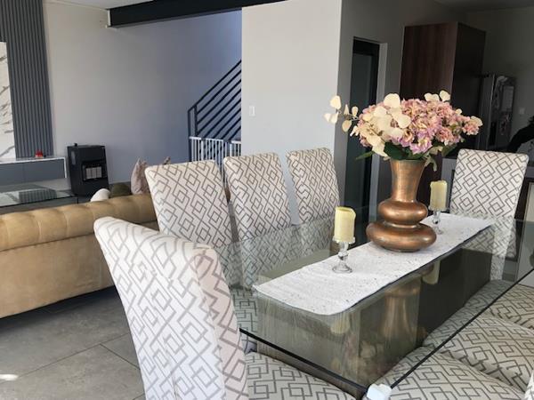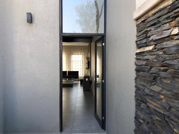 Designed with both elegance and comfort in mind, this immaculate three-bedroom home offers a warm and inviting atmosphere. Abundant natural light pours through large windows, while the impressive double-volume entrance enhances the sense of space. Sophisticated black accents and striking stone cladding at the entrance create a bold, modern aesthetic, complemented by tasteful lighting.