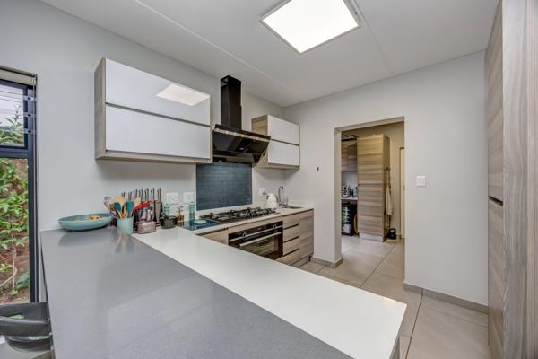 From the moment you enter, youre met with sleek architectural lines, high-quality finishes, and a light-filled open-plan layout designed for effortless living and entertaining. The designer kitchen features modern cabinetry, elegant countertops, an open plan kitchen island, and a separate scullery seamlessly flowing into the dining and lounge areas and out onto a covered patio and private garden for year-round entertaining.