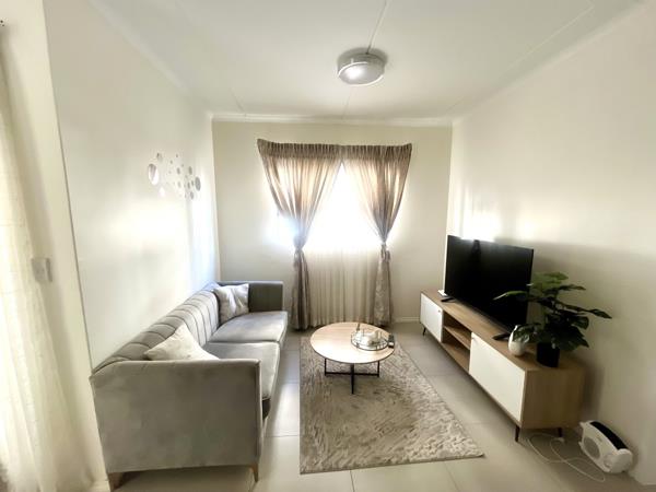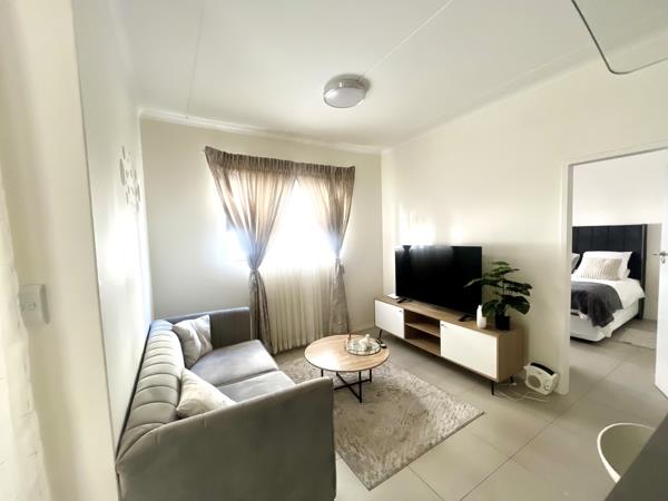 This cozy ground floor apartment is perfect for a bachelor or a young couple looking to stay in a convenient location. Access to basic amenities is only 5 min from here. There are 2 shopping centres a minute away, access to Gautrain bus stop is less than 10min walk from this apartment.