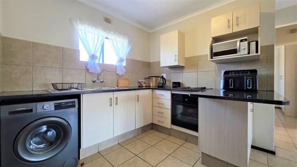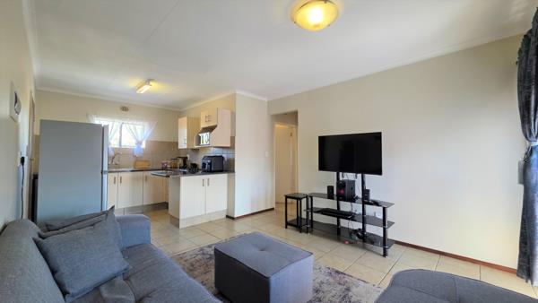 Designed for low-maintenance living, the apartment boasts a fully tiled, open-plan layout. The living space flows out onto a private balcony, ideal for relaxing or entertaining. The kitchen features granite countertops, a breakfast bar, and good cupboard space, making it both functional and attractive. The two bedrooms come complete with built-in cupboards and share a contemporary bathroom.