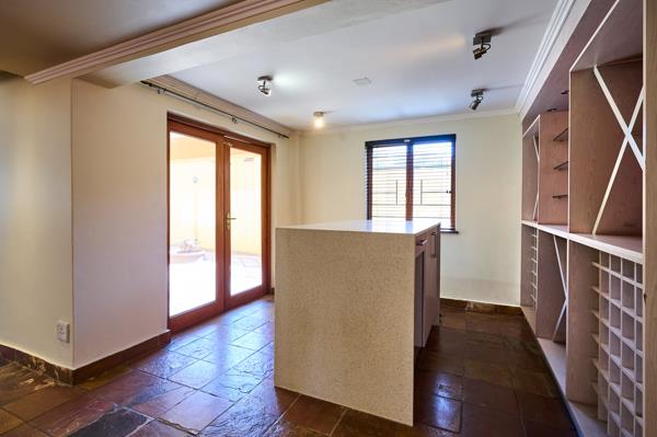 The heart of the home is the open-plan living area, featuring a bar with built-in wine racks that flows seamlessly onto the covered patio and private garden. Perfect for entertaining, the outdoor area includes a heated swimming pool and a versatile patio space for year-round enjoyment.