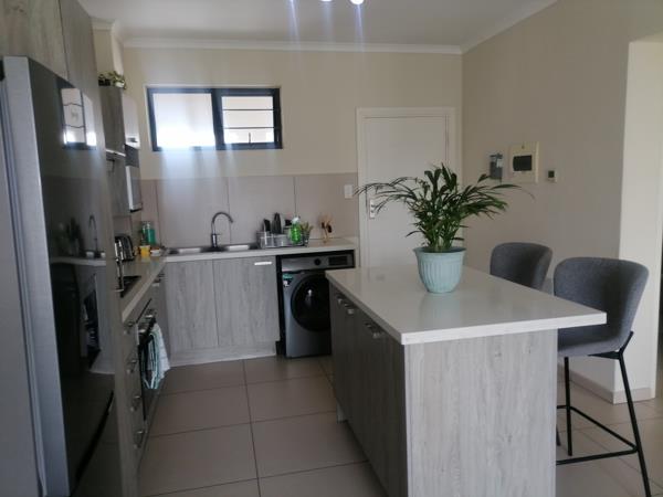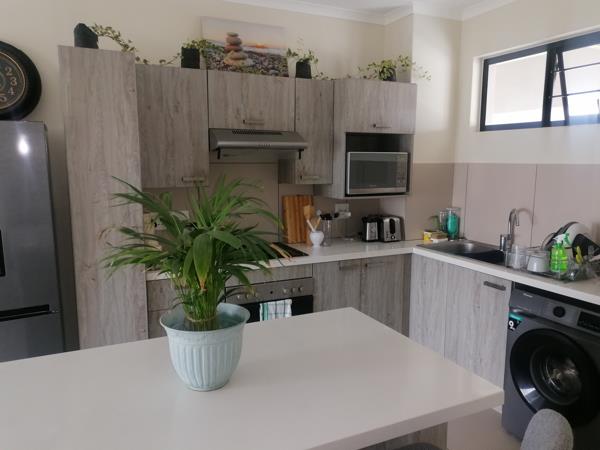 Modern 1 bedroom, 1 bathroom apartment available in the secure Midview Gardens complex. The unit offers an open-plan kitchen and living area leading to a private balcony. The kitchen is fitted with modern finishes and ample cupboard space. The bedroom is well sized with built-in cupboards, and the bathroom is neatly finished.