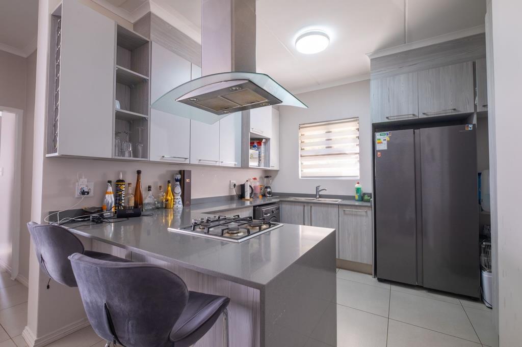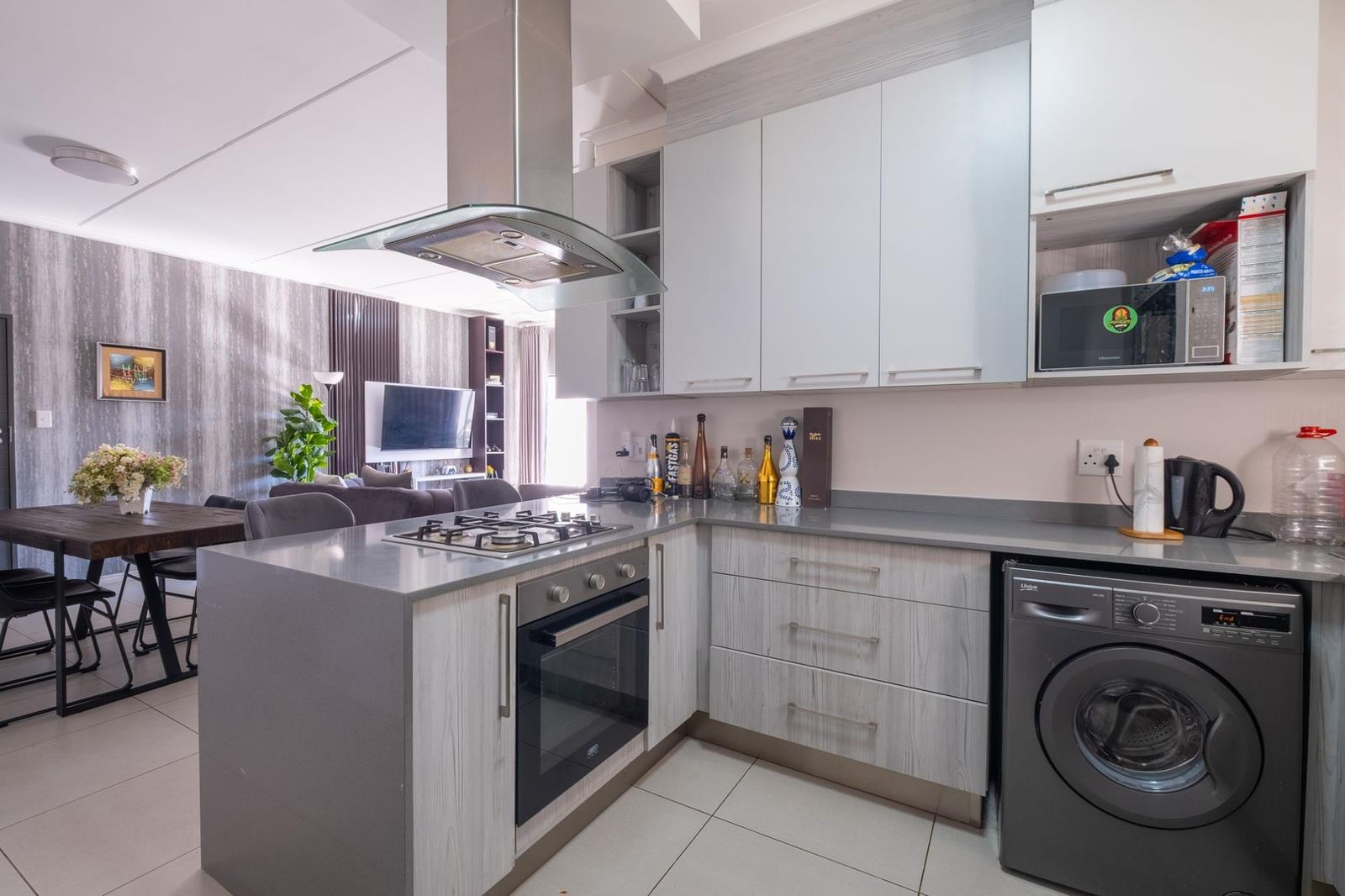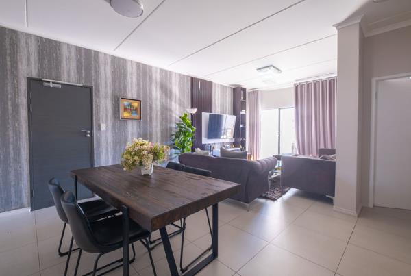 This luxurious newly renovated three-bedroom apartment, located on the ground floor, boasts elegant chandeliers and tasteful wallpaper throughout. The main bedroom is a spacious suite with his and hers basins, a luxurious bath, and a separate shower. Two additional bedrooms share a modern bathroom with a shower. The open-plan living room opens up to a balcony, perfect for enjoying the fresh air. The kitchen is also open plan and features high-end appliances and finishes. This property includes two carports for convenient parking. Ideally situated next to Carlswald Mall and just a short drive from the N1 highway, this apartment offers both style and convenience.