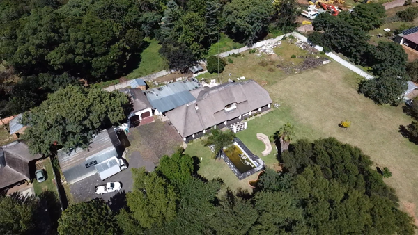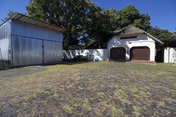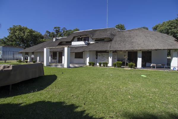 The house includes Lounge, study, large kitchen, 2 loft rooms, three bedrooms, two bathrooms, a double garage, and staff quarters. While the structure is sound, the property has been used primarily for storage in recent years and is now in need of significant repair and maintenance to return it to a livable standard.