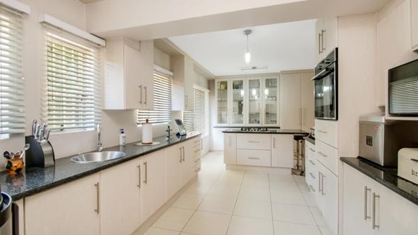 This phenomenal property boasts four well-appointed bedrooms, each equipped with exquisite, state-of-the-art wardrobes, while two of the bedrooms feature convenient ensuites. The expansive dining and living area seamlessly flows into a stunning kitchen, complete with a spacious built-in unit, stove, oven, and extractor, offering abundant space for luxurious family living.