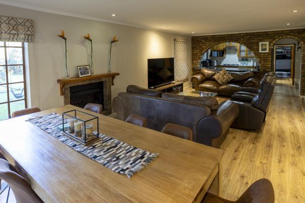 One of the highlights of this property is its extensive entertainment area, designed to provide endless enjoyment for residents and guests alike. The centrepiece is a sparkling pool, perfect for cooling off on hot summer days or hosting memorable poolside parties. Surrounding the pool, you''ll find a spacious patio area, ideal for sunbathing, braai, and al fresco dining. For all your indoor entertainment dont forget the built-in bar area man cave cosy in Winter months, this Home has it all.