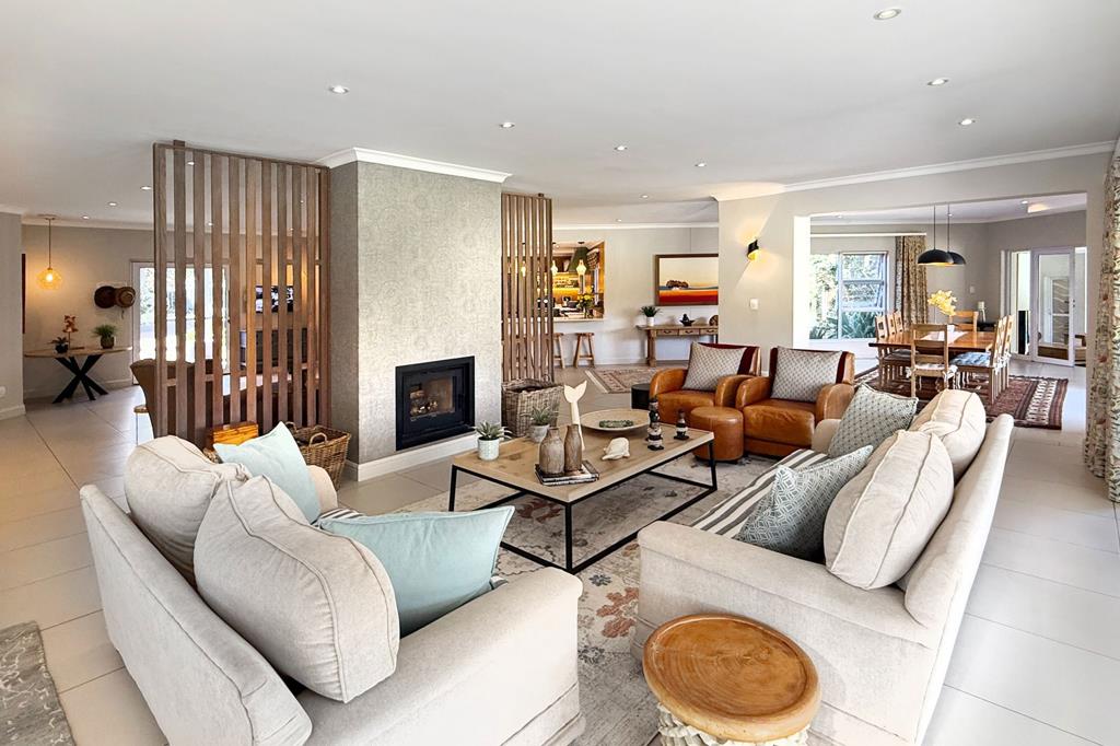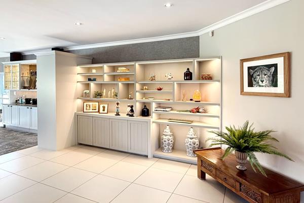 Timeless elegance. A classic contemporary home set in a proudly South African indigenous garden and demonstrating generous proportions and attention to detail which translates into sophisticated elegance and style. Sequestered in a private gated community of five homes and located within the secure boomed area of Glenferness this property is a sanctuary consisting of a 5 bedroom primary residence (which can be utilized as 2 dwellings with own kitchens and reception areas) plus external guest suite, expansive home office, large gym, study, four income producing cottages and staff accommodation. In addition there are 5 automated garages, parking for 17 vehicles undercover, wood shed, storage for each of the cottages, greenhouse and 5* chicken run. Elegant living is the theme and all spaces in the home exude sophisticated style. The kitchen is a culinary delight with bespoke cabinetry, top of the range Smeg gas/electric stove, breakfast nook and separate pantry, scullery and laundry. Custom lighting throughout enhances the atmosphere. Entertainment is taken care of with an open plan living area focused around a huge feature fireplace and boasting multiple areas to socialize both indoor and outdoor with stacking doors inviting natural flow. The enclosed patio opens onto the pool, firepit and outdoor kitchen. To reduce reliance on government services there is a borehole with 15 000 litre water storage, grey water system for irrigation, solar geysers, extensive solar system (inverters 24 kW, battery backup 60 Kwh and approximately 28 Kw of panels), 25 kVA generator and inverters in each of the cottages for the tenants. Full state of the art security system.