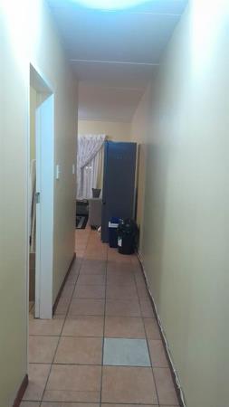 The entrance is fitted with a security gate. On the left as u come in you get the bedroom. It has built-in cupboards. Next you find the bathroom bath/shower combination, toilet and basin. The living area is open plan with kitchen cupboards and under-counter oven with hob. All floors are tiled.
