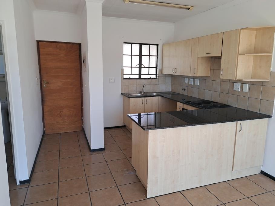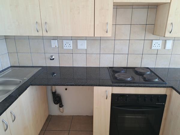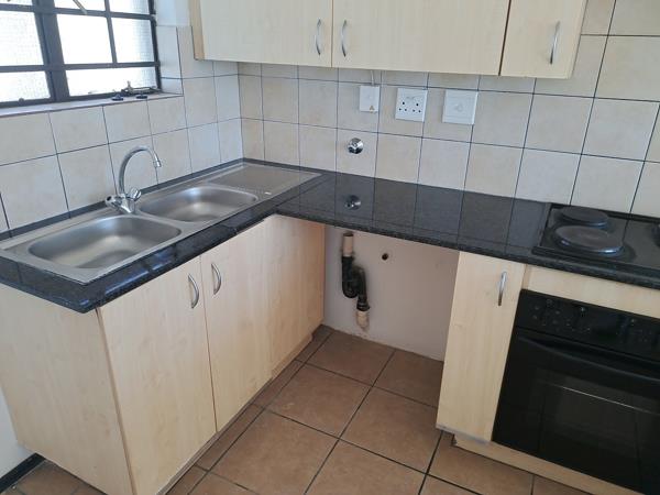 Discover this modern 39 sqm apartment, it is newly painted and ideally situated within a secure complex in Grand Central, Midrand. The multi-story residential buildings present a contemporary, neutral-toned facade, complemented by well-maintained green lawns and paved walkways, fostering an inviting communal environment. This thoughtfully designed unit offers an open-plan layout, seamlessly connecting the living and dining areas for a comfortable and functional flow.