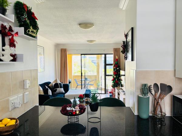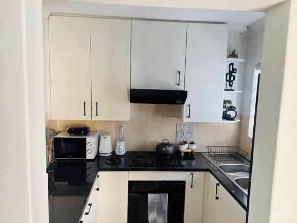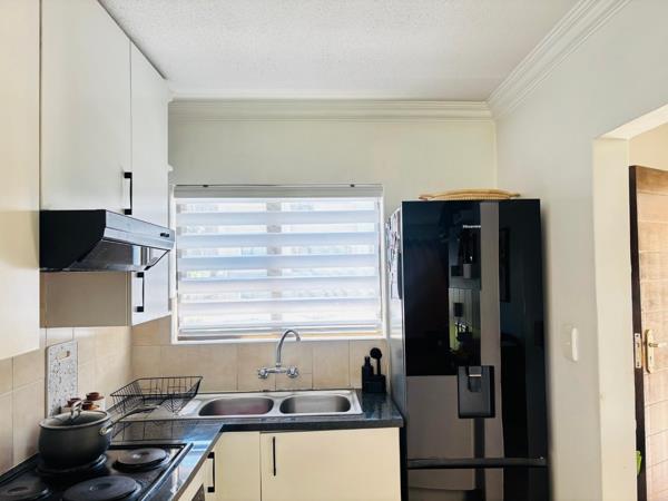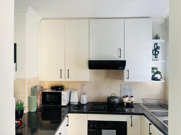 The open-plan lounge area is bathed in natural light and extends effortlessly onto a private, intimate balconyperfect for morning coffee or unwinding after a long day. The sleek, contemporary kitchen is fitted with high-quality built-in cupboards, offering both functionality and aesthetic appeal.