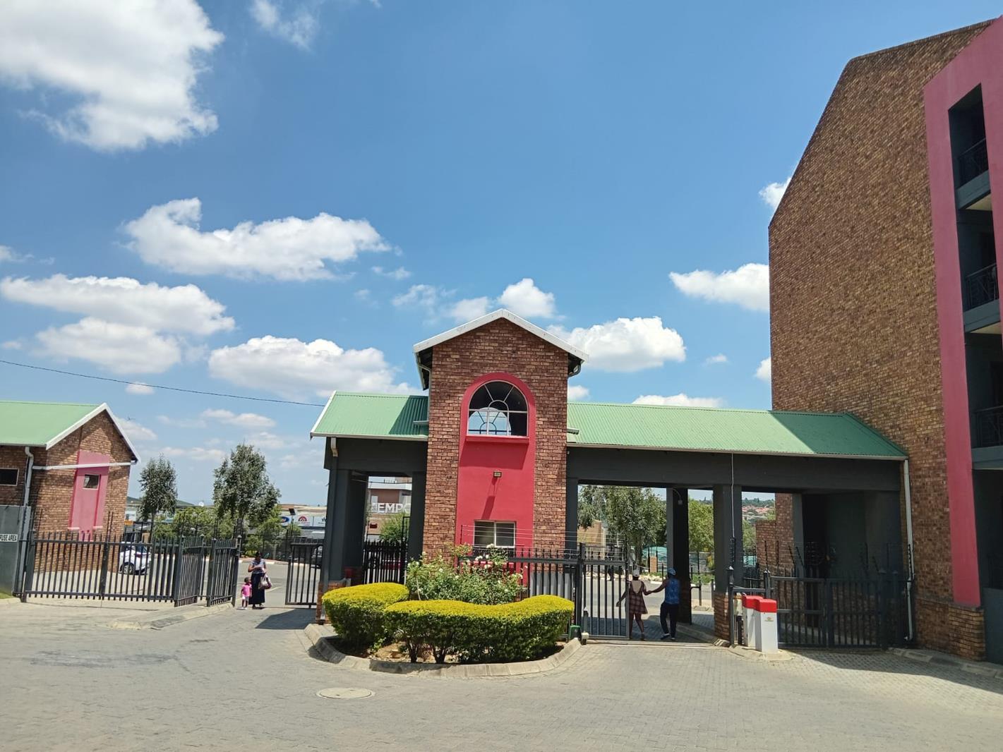 Discover this modern 39 sqm, newly painted apartment ideally located within a secure residential complex in Grand Central, Midrand. The multi-storey development boasts a contemporary, neutral-toned faade, complemented by well-maintained green lawns and paved walkways, creating a welcoming communal environment.